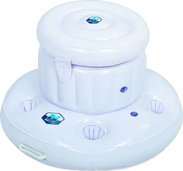 Lekker in je spa genieten van drankjes en hapjes? Het kan nu met de NetSpa opblaasbare bar. Met een diameter van 64 cm heeft de bar genoeg ruimte voor 5 bekerhouders en een groot compartiment in het midden, zonder teveel ruimte in beslag te nemen. In het grote vak kun je ijs, flessen, blikjes of andere hapjes in kwijt. Deze blijven veilig in het compartiment door een handige deksel. Je hoeft dus niet langer uit je spa te gaan. Je hebt een lekker koud biertje, een fles wijn of hapjes altijd binnen handbereik.