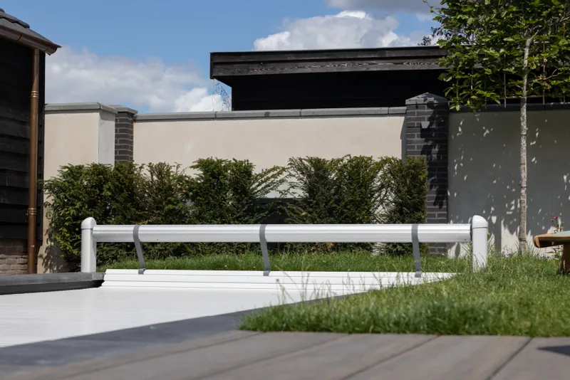 Dankzij de sleutelschakelaar met 3 verschillende standen is het Open Classic oprolsysteem gemakkelijk te bedienen. Hierdoor hoef je jouw lamellen niet handmatig op het zwembad te draaien, maar gebeurt dit geheel automatisch. Draai de sleutel om en afhankelijk van de stand, rollen de lamellen automatisch op of van het zwembad. Super handig toch?